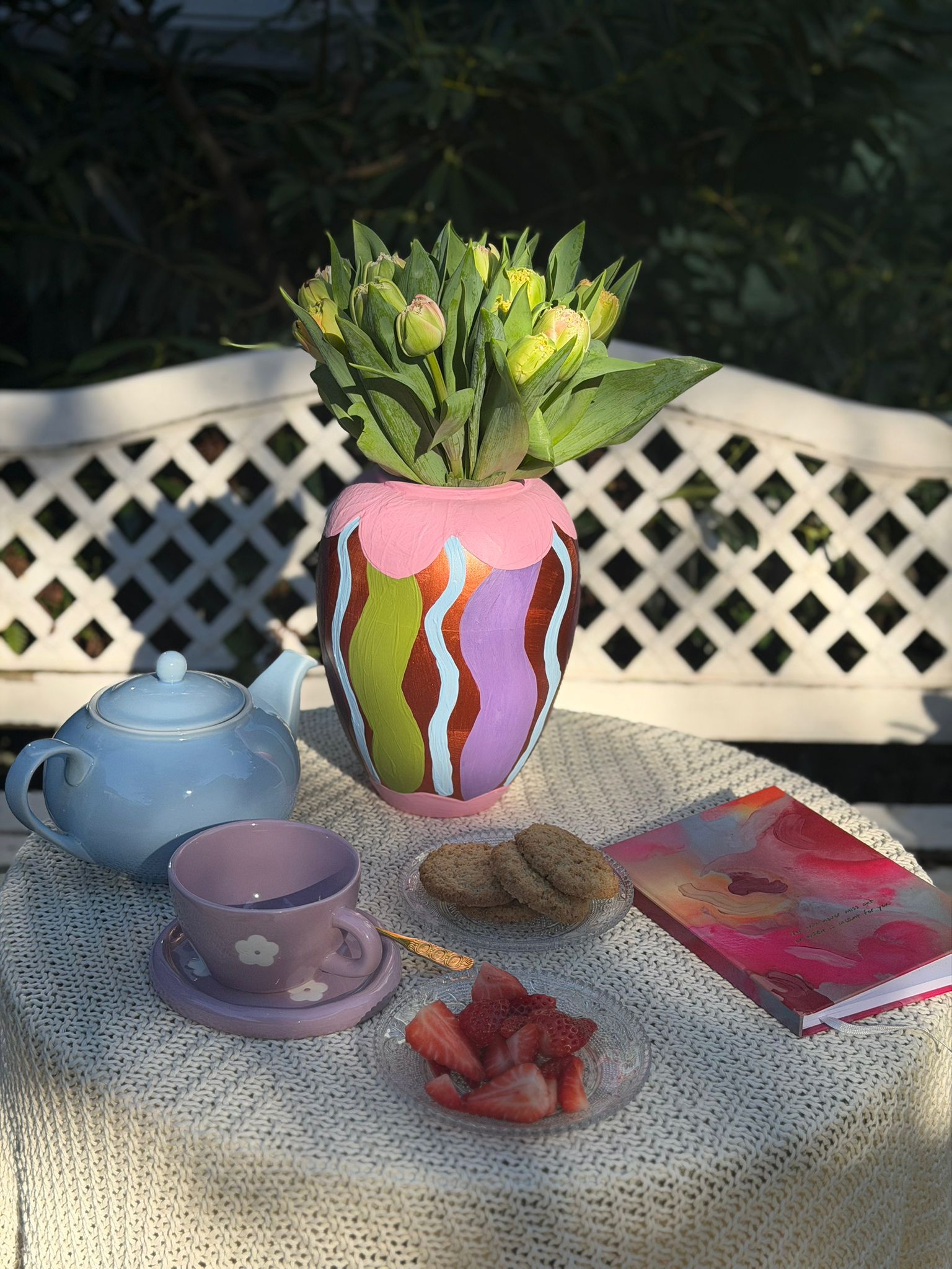 Die Vase ist handbemalt und garantiert ein Eyecatcher in deinem Zuhause!