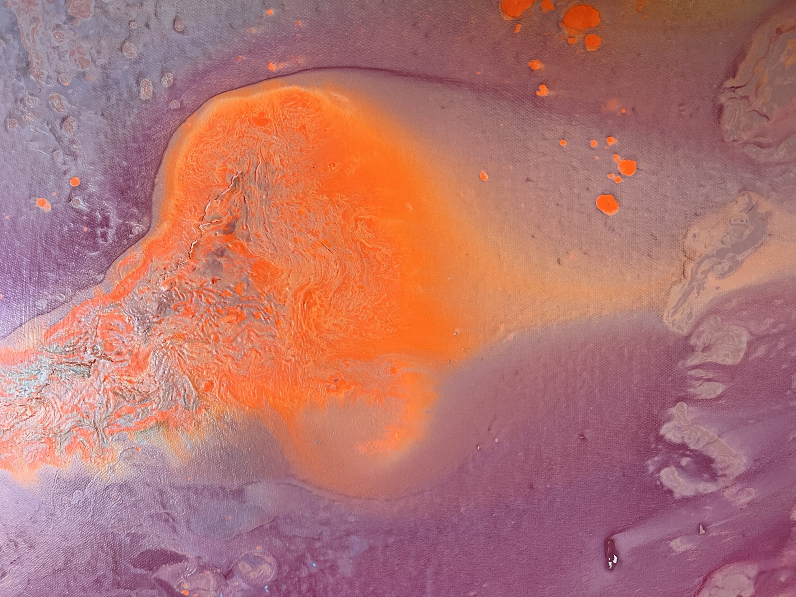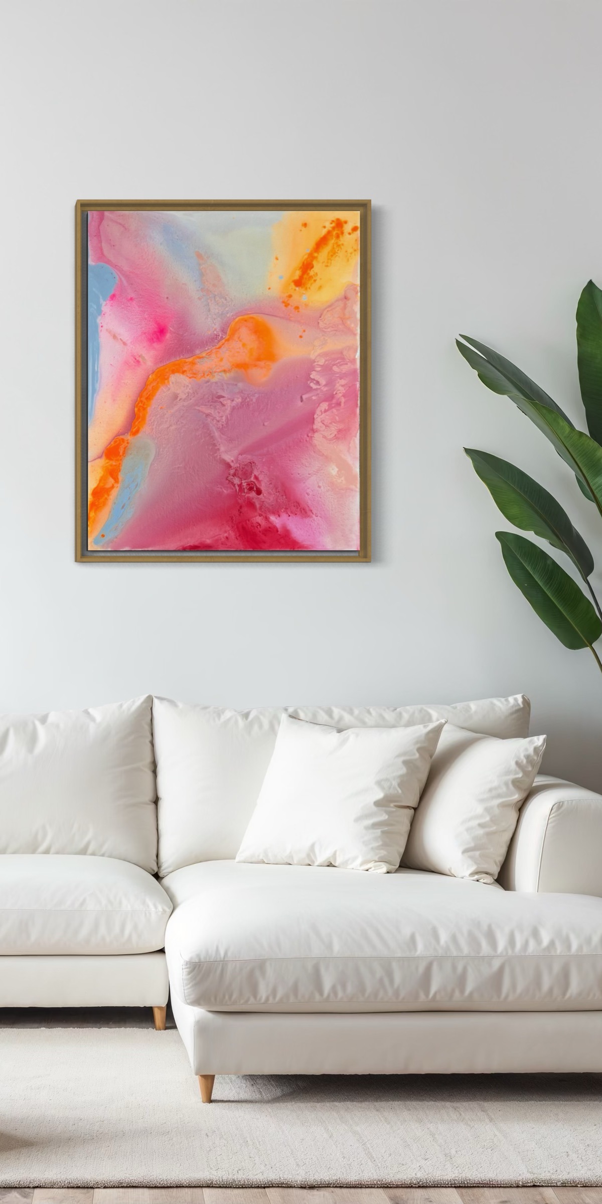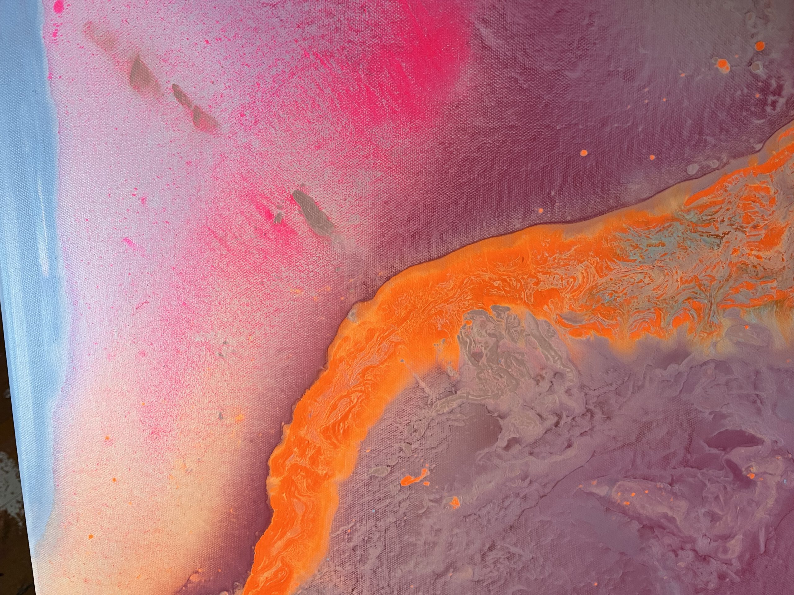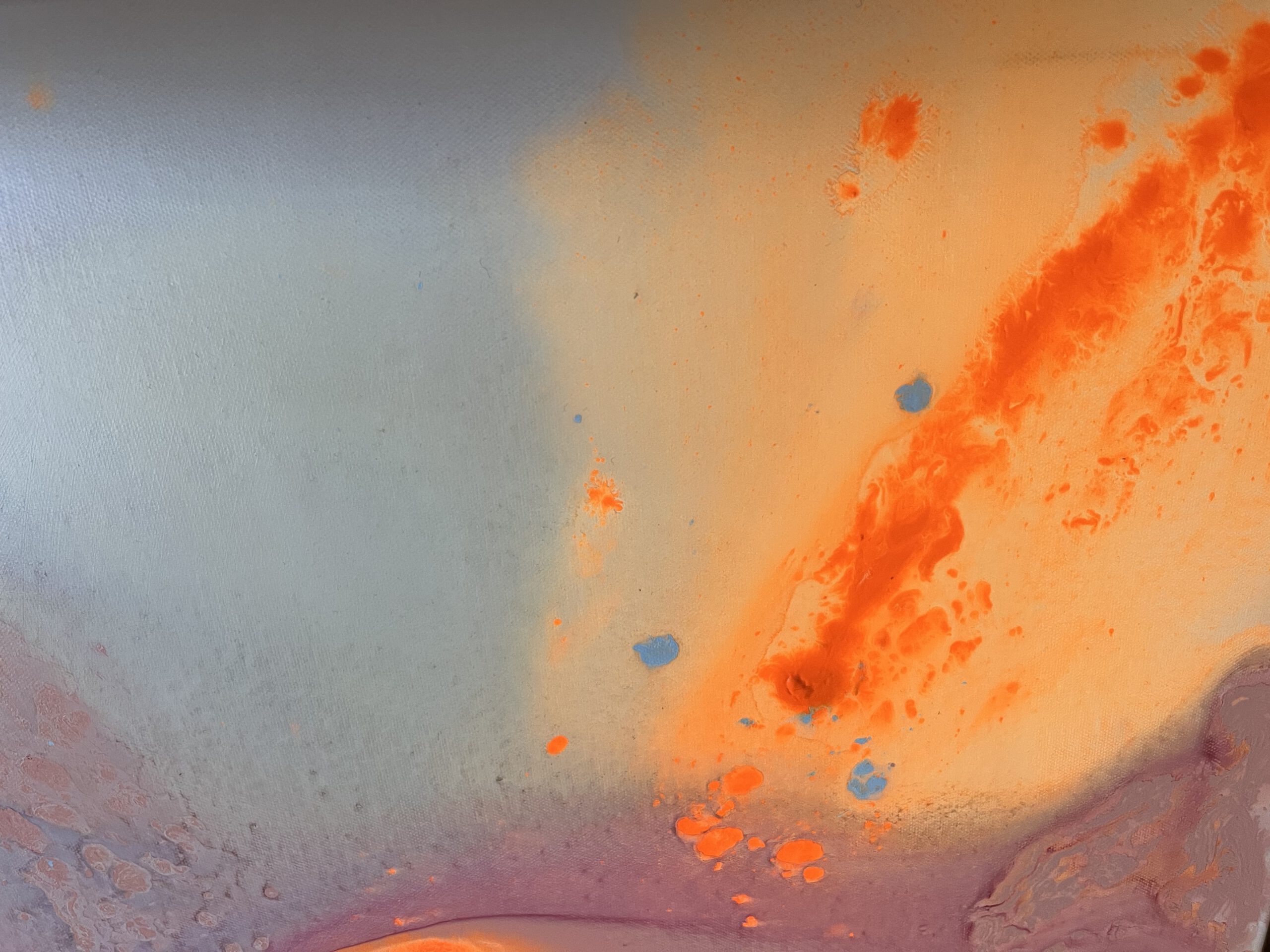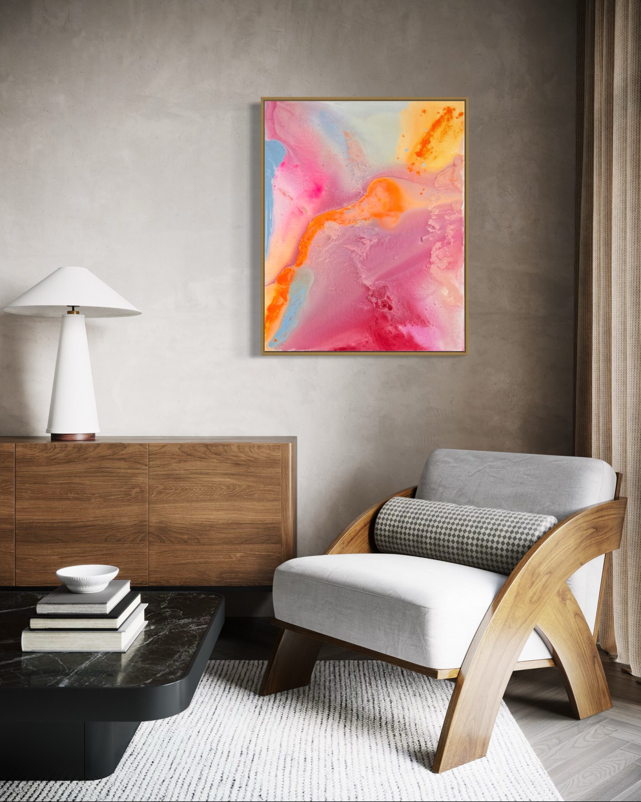 Sanftes Rosa, warmes Orange, sonniges Gelb und strahlendes Hellblau fließen harmonisch ineinander und erzeugen ein Gefühl von Leichtigkeit und Optimismus. Die energiegeladene Komposition wirkt wie ein Sonnenaufgang in Farben – ein visuelles „Alles ist möglich“.